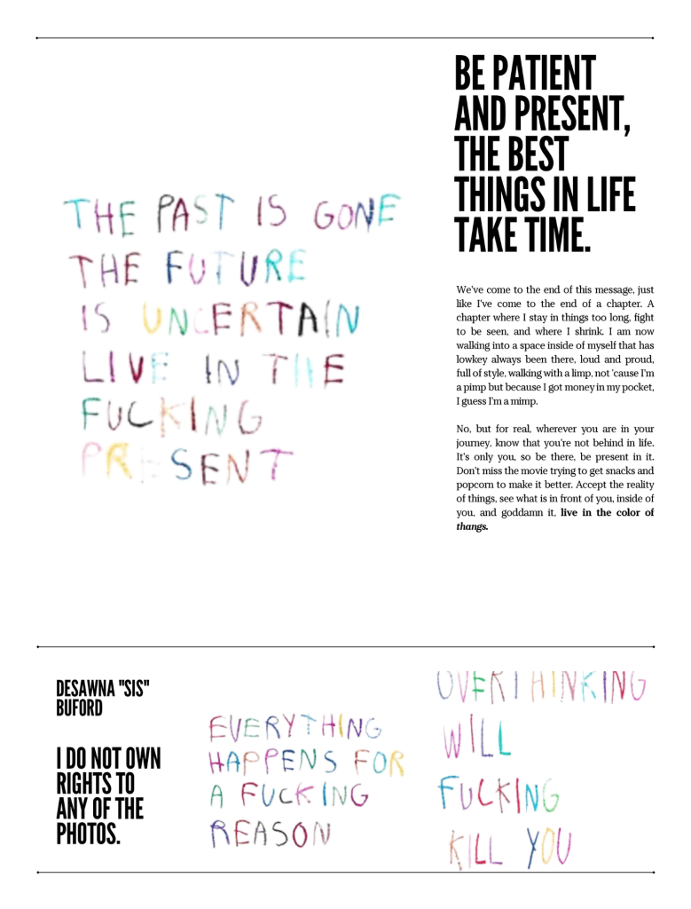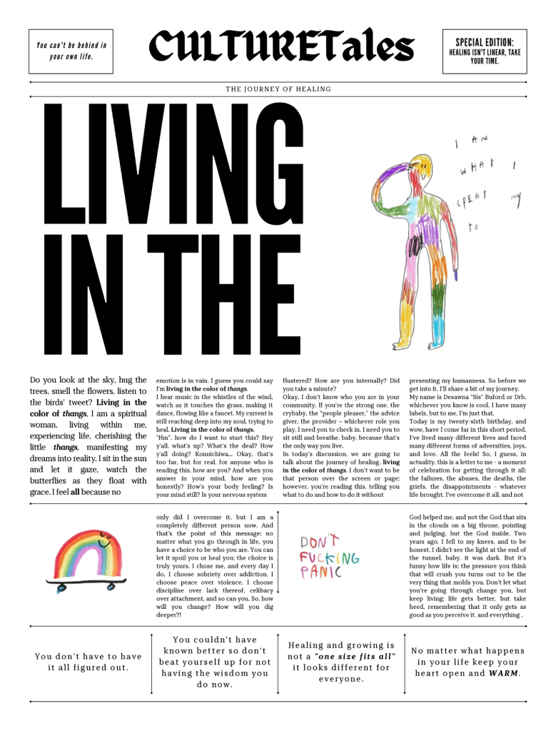 My name is Desawna SIS Buford. I am a writer, director, designer, and multidisciplinary artist based in Detroit, Michigan. Through storytelling, I aim to create work that heals, inspires, and transforms. I’m the founder of CultureTales, a creative platform rooted in community, spirit, and legacy. Most recently, I turned my seven-part newspaper series into a book titled Water to the Soil. This project invites readers to join me on a spiritual journey—one of self-discovery, resilience, and inner growth. Whether you’re finding your footing or learning to walk your path, this book offers a space to reflect, feel, and evolve.